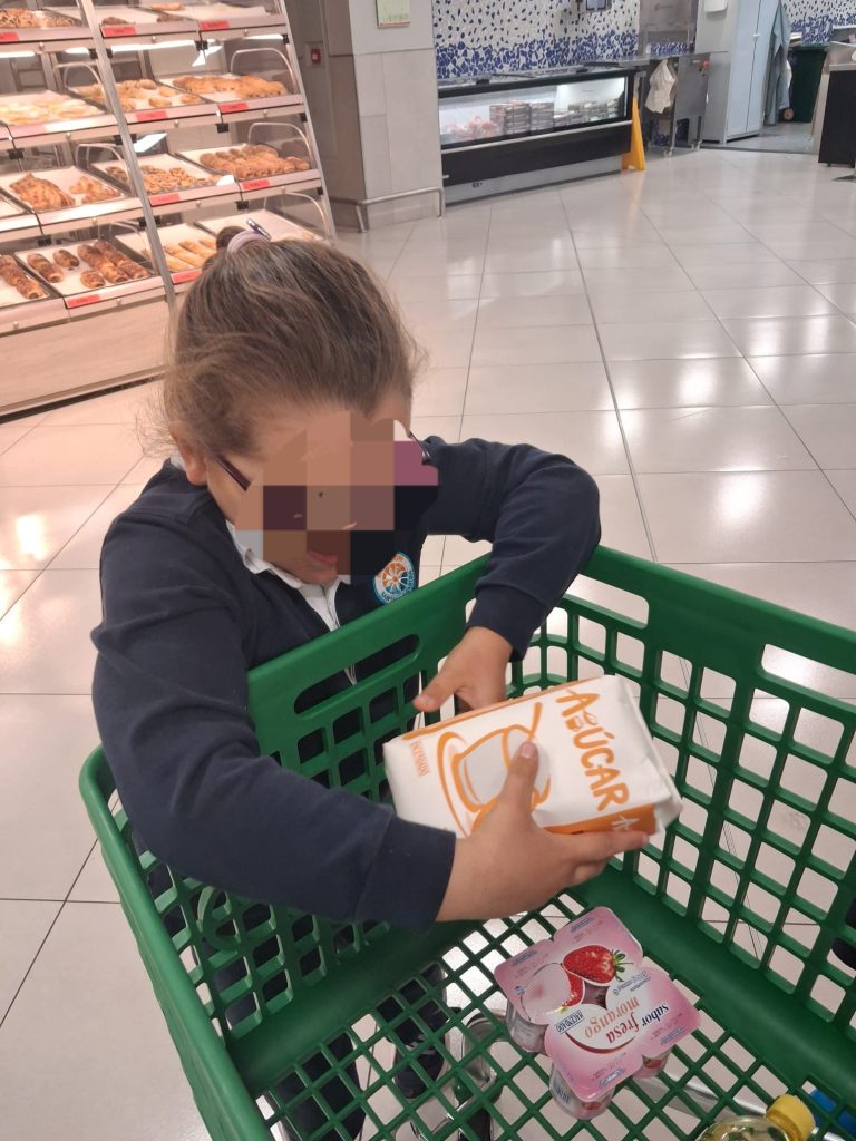 A turma dos 5 anos foi ao Mercadona comprar os ingredientes para o bolo que decidiram fazer juntos.